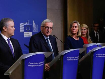 El presidente colombiano aborda la emergencia migratoria con Juncker y Mogherini