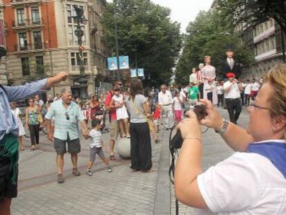 El ambiente festivo se transforma a los largo de la jornada en la principal arteria de Bilbao