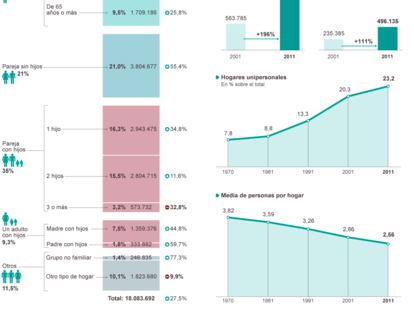 En una década han dado un salto gigante los hogares españoles formados por una sola persona, por parejas de hecho y por miembros de parentescos diversos