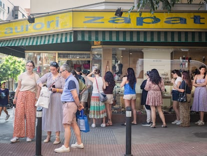 Jóvenes ansiosas por comprar zapatos baratos hacen una cola casi permanente a las puertas de la tienda, que tiene más de 50 años