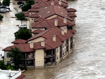 Las imágenes aéreas captan las fuertes crecidas cerca del puente de Austin, que se suman a los estragos ocurridos en el resto del Estado