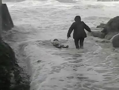 Las imágenes muestran cómo la mujer intenta ayudar a su pareja y acaba también en el agua