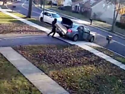 Las cámaras de seguridad captaron el momento en el que el delincuente intentó introducir el aparato en su coche