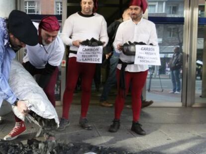 Un hombre vestido de Olentzero representa frente a la delegación de Gobierno la queja