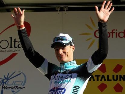 El belga se impone en la segunda etapa de la Volta Catalunya en un sprint precedido por una caída en la última curva