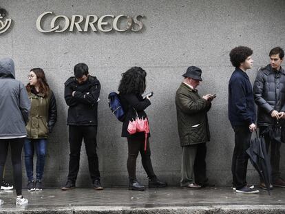 Las oficinas de Correos registran largas colas para realizar el trámite, ralentizado este lunes por una avería de Telefónica