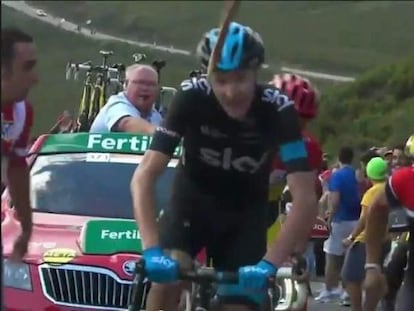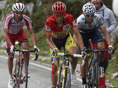 Contador, Valverde y Purito, enzarzados en la batalla por el liderato, no negocian la eliminación del ciclista británico, que flaqueó en los Lagos de Covadonga