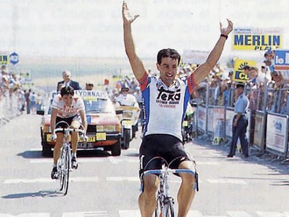 El ciclista asturiano ganó en 1986 en Futuroscope frente a Bagot, al que no quiso dar relevos