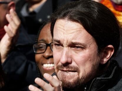 El líder de Podemos ha salido del recinto y ha abrazado a Juan Carlos Monedero