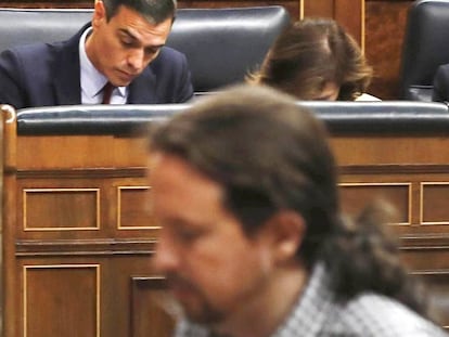 Pedro Sánchez y Pablo Iglesias hacen terapia de pareja ante el hemiciclo y mantienen la incógnita de su presunta boda política