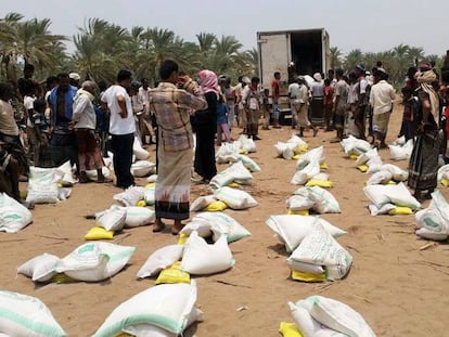 Con el dinero que Eva Erill recauda en Barcelona Faten al-Osimi compra los alimentos que reparte entre los refugiados de Saná, la capital yemení