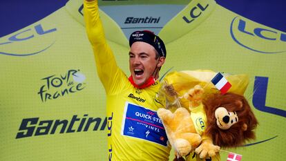 El belga, especialista en clásicas, aprovecha las condiciones para imponerse, sorprendentemente, a los grandes favoritos en una contrarreloj en la que Pogacar ya marca territorio