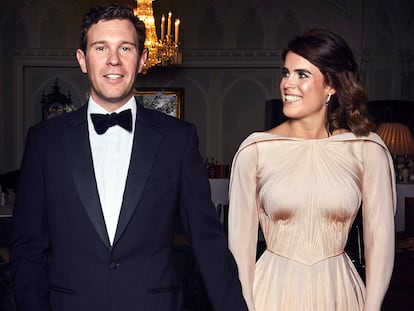 Para acudir a la recepción y fiesta posterior al enlace, la princesa optó por un diseño de noche de color champán firmado por el creador estadounidense Zac Posen.