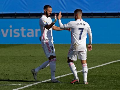 El Madrid sonríe ante el Huesca (4-1) con goles de Hazard, Benzema (2) y Valverde