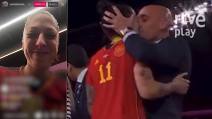Estas imágenes han visto la luz gracias a un usuario argentino de Twitter. Acumulan más de un millón de visualizaciones. Rubiales aún no se ha pronunciado sobre este gesto. Sí sobre otro, que ocurrió unos instantes después. Durante la entrega de medallas, agarró de la cabeza a Jenni Hermoso, la máxima goleadora de la historia de la selección, y la besó en la boca. De este beso se ha escrito mucho ya, pero Rubiales, sin embargo, ha emprendido una huida hacia adelante. Tanto es así que, gracias de nuevo a un vídeo capturado por una usuaria anónima de Instagram, vemos cómo la protagonista del beso, Hermoso, mientras retransmite una grabación en directo desde el vestuario con una botella de champán y un bizcocho de chocolate, opina por primera vez del beso tras una pregunta que se escucha a lo lejos de una compañera: “¿Quién se ha besado?”. “Tía, ¿de verdad?”. “Pero, ¿qué haces tía?”. Es entonces cuando Hermoso dice: “Eh, pero no me ha gustado, eh. Pero, ¿y qué hago yo? Mírame a mí, mírame a mí. Mírame”. El vídeo acumula 3,5 millones de visualizaciones.