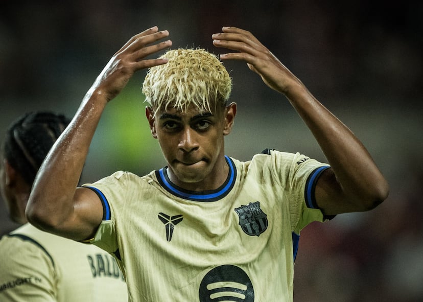 Para que lo supiéramos, porque hacerlo público es parte del éxito, el futbolista del Barça colgó buenas fotografías y un vídeo en sus redes que podría ser el videoclip de una estrella. Yamal fardó de su nuevo collar: oro y diamantes, piedras preciosas blaugranas, el código postal de su barrio de Mataró en una de las piezas de la cadena y colgando sus iniciales YL con más oro y diamantes. Costó, según parece, 342.000 euros y lo diseñó Víctor Rodríguez: hijo de puertorriqueños nacido en Nueva Jersey, propietario desde 2015 de la joyería Tajia Diamonds de Nueva York (entre Madison y Park Avenue) y que tiene entre sus clientes a celebridades de la música y el deporte. El homenajeado llevaba un blazer cruzado de un diseñador que ha vestido a muchas de las estrellas del show business: Mike Amiri, hijo de padres iraníes, criado en Beverly Hills, estética del glamour de Hollywood. En otras de las fotografías, ya con otra ropa, está bailando feliz ante la mesa del DJ al lado de Morad: brillante rapero de la periferia de Barcelona, hijo de padres marroquíes, varias veces detenido. En otra canta con Dystinct, nacido en Bélgica, hijo de padres marroquíes, éxito global cantando sobre todo en francés y árabe.