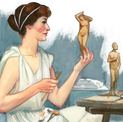 Este imaginario dibuja paraísos pretéritos de mujeres serenas, plácidamente dedicadas al hogar, la crianza y la costura. Pero la historia muestra que, durante milenios, hombres y mujeres han necesitado bregar fuera de casa para ganarse el sustento. Incluso en la Grecia de los gineceos, solo una pequeña élite podía permitirse la vida recluida de sus esposas. En Atenas hubo un gran número de esclavas sirviendo de sol a sol, y la mayoría de mujeres libres trabajaban en el campo o el comercio, la artesanía o las tareas funerarias. Aristófanes menciona a pastoras, hortelanas, posaderas, floristas, panaderas y pasteleras. En sus comedias afirmaba que la madre de Eurípides era verdulera; la de Sócrates, matrona. Como documenta Ana Valtierra en Eclipse. Creadoras y artistas en la antigua Grecia, las fuentes citan a reconocidas ceramistas, pintoras y escultoras. Por ley, sin embargo, no podían tener propiedades a su nombre, y esa tutela perpetua era un encierro doméstico sin escapatoria. Igualmente, en nuestro tiempo, sorprende el retorno de los adalides de la madre hogareña, cuando pocas familias podrían subsistir con un solo salario y la idea de un proveedor único parece una quimera.