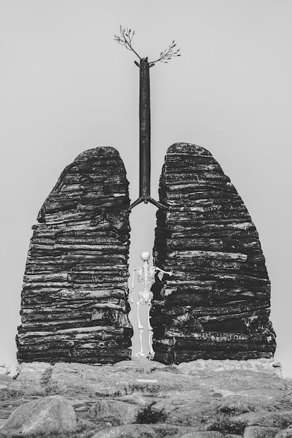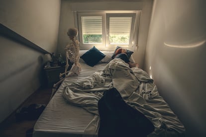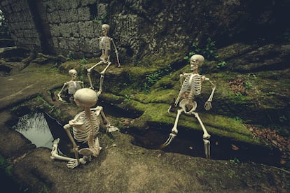 Si Valéry dijo que lo más profundo es la piel, aún lo son más los huesos. Alán Pérez sitúa a sus más que estilizados protagonistas en una serie de escenarios para ironizar sobre la condición humana