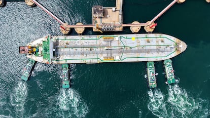 Un petrolero, el pasado sábado en el puerto chino de Qingdao. AP