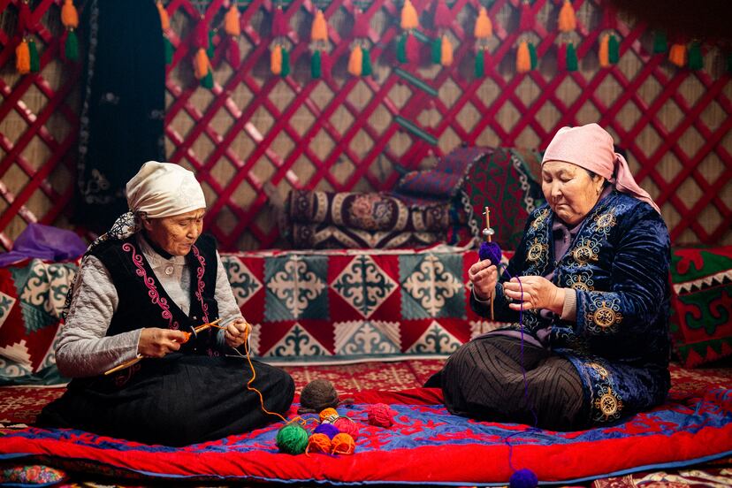 Las mujeres de Barskoon (un poblado a 1.750 metros sobre el nivel del mar en el noreste de Kirguistán) durante generaciones han producido alfombras, tapices y bufandas de seda adornados con fieltro, una tela típica del país. Esta actividad artesanal, que hace uso de materiales locales y conocimientos tradicionales, se lleva a cabo en armonía con el medio ambiente y con la estructura social de las comunidades rurales de montaña, proporcionando una fuente de ingresos alternativa a la migración.