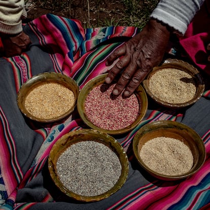 “Cuando éramos niños, la quinoa de colores era común: la producíamos para comerla. Luego, poco a poco, desapareció, desplazada por la blanca”, explica la campesina Eulalia Silva. Silva, que se sienta y derrama el contenido de sus bolsillos en una manta colorada tirada en suelo para enseñar su cosecha: semillas de colores ―rojo, rosado, amarillo, naranja, negro― que el mercado internacional no quiere, aunque son las más sabrosas y rica en nutrientes y proteína.