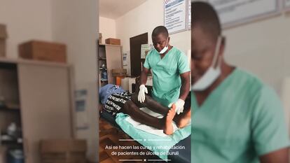 Kodzo N’tsakpoe era aún más pequeño cuando ingresó en Tsévié; 13 años tenía. Su historia, similar a la de su compañera, comienza en 2018 con una herida fea en la cara exterior del tobillo derecho que le comía la piel y que no se cerraba de ninguna manera. Tras pedir información en el centro de salud local, su madre lo dejó en este hospital, que es uno de los centros de referencia a nivel nacional para el tratamiento de Buruli, y se largó para no regresar. “Vino, le dejó aquí y se marchó. Como vio que el niño se quedaba con otras personas, ella se fue con sus otros hijos. Tiene siete, pero Kodzo es el menor”, vuelve a traducir el fisioterapeuta. Nadie ha preguntado por él en estos años en los que la lesión le ha producido una deformidad irreversible que le impide caminar bien.