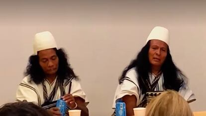 Calixto Suárez y Roberto Chaparro, indígenas arhuacos de la Sierra Nevada de Santa Marta, en Colombia, también viajan a diferentes lugares del mundo para proteger su territorio. “Muchas personas saben que vivimos sobre la tierra, pero tomar conciencia de que la tierra es un ser vivo es muy importante”, explicó Suárez en una reciente conferencia en Madrid.