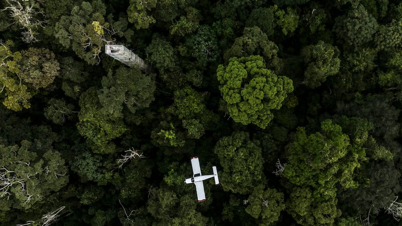 El destino de la Amazonia está en la mente de Gatti mientras sube a una torre de celosía en el bosque de Tapajós, uno de los puntos de referencia que sobrevuelan sus pilotos cuando recogen muestras de aire. La estructura metálica se zarandea y cruje mientras ella asciende. Cuando alcanza la cubierta, 15 pisos por encima del suelo, contempla el bosque que se extiende en todas direcciones hasta el horizonte. “Estamos matando este ecosistema directa e indirectamente”, dice, emocionándose. Se seca una lágrima. “Esto es lo que me asusta terriblemente y lo que me afecta tanto cuando vengo aquí. Observo cómo se muere el bosque”.