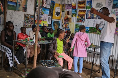 Esa es una de las razones que llevó a Benard Maingi a tomar las riendas del Art Haus, un proyecto cuyo objetivo es educar a los jóvenes del barrio que de otra manera no tendrían oportunidad para acceder a una enseñanza en el ámbito de las artes. “Soy un artista autodidacta y nunca tuve a nadie que me guiara en este camino. Aunque la comunidad nunca me lo puso fácil, entendí que debía darle algo a cambio, y esa fue la razón por la que lo hice: para que ningún otro niño pasara por lo mismo”, explica Maingi desde el espacio, una pequeña casa decorada con las obras de los propios estudiantes.