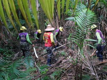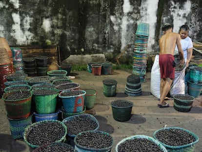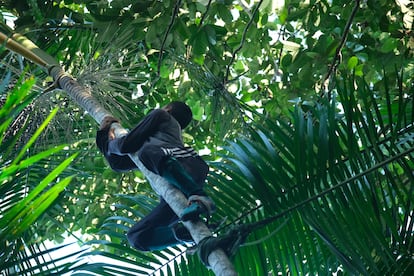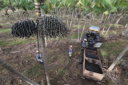 Racimos de açai recién recogidos. Este fruto se ha convertido en una fuente vital de ingresos para miles de familias del estado de Pará, en el norte de Brasil. Conocido como el “oro negro” del Amazonas, este fruto representa una riqueza natural que transformó la vida de muchas comunidades y se consolidó como la base económica de la región.Javier SulePalmeras de açaí en el Amazonas paraense. La creciente demanda global de este fruto ha impulsado la expansión de su cultivo y la transformación de los bosques del estuario del Amazonas: los bosques de várzea, antes diversos y ricos en especies, han sido reemplazados por monocultivos de açaí. Según la bióloga Maria Barros, del Instituto Nacional de Ciencia y Tecnología, cuando la densidad supera las 160 o 180 palmeras por hectárea, el ecosistema pierde diversidad y funcionalidad. Esto pone en riesgo el equilibrio de una de las regiones más ricas y frágiles del planeta.Javier SuleLos recolectores de açaí, conocidos como 'peconheiros', se enfrentan a una tarea ardua: trepan a las palmeras que alcanzan entre 20 y 25 metros de altura utilizando una técnica rudimentaria pero ingeniosa. Utilizan un machete y se valen de una 'peconha', una cinta o cuerda a veces fabricada con las hojas de la propia planta, que se amarran en los pies y que les permite ascender hasta lo más alto, donde se encuentran las bayas o racimos. Jonilson Lira Costa (en la fotografía) puede subir entre 15 y 30 veces al día a una palmera durante la temporada, cosechando de ocho a diez sacos de kilogramos cada uno. El trabajo es agotador y arriesgado: se trepa con machete, botas o descalzo, y se necesita habilidad, fuerza y experiencia. Cuando baja la temporada, el 'peçonheiro' solo recoge lo mínimo.Javier SuleUn grupo de cultivadores de açaí de una cooperativa en la isla de Marajó, la mayor isla fluvio-marina del mundo, trabajan junto a técnicos de Emater, una entidad estatal de asistencia rural, en un manejo sostenible del cultivo. Realizan inventarios forestales y limpiezas selectivas para “abrir el cielo” del bosque, facilitar la cosecha y permitir la entrada de luz solar. El objetivo es mantener una producción responsable, con mínimo impacto ambiental.Javier SuleLas bayas son transportadas en barco hasta Belém, la capital del estado, donde trabajadores sudorosos cargan enormes volúmenes de fruta hacia el mercado para venderlas lo más rápido posible antes de que este frágil fruto se eche a perder.Javier SuleUna mañana de ajetreo en el Porto do Açaí de Belém do Pará. En el mundo del açaí, los trabajadores recolectan la fruta en diferentes unidades: la lata, que equivale a unos cuatro o cinco kilos de fruto y sirve para pagar al 'peçonheiro'; la cesta, un contenedor más grande usado en la recolección en el bosque que equivale a unas tres o cuatro latas; y el saco de 15 kilos, unidad estándar para transporte y venta mayorista. Los 'peconheiros' calculan su pago generalmente por lata, entre 10 y 30 reales cada una (entre 1,6 y 4,8 euros), según calidad, temporada y transporte. De esta forma, pueden ganar entre 300 y 600 reales al día (entre 49 y 98 euros).