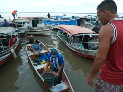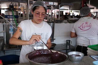 Gran parte del açaí se produce de forma artesanal y familiar y se vende directamente a los llamados batedores locales que lo procesan.Javier SuleEl açaí es un producto esencial en la mesa diaria de los paraenses. Durante siglos ha sido un alimento básico en la cuenca baja del Amazonas. En Pará, su cuna, se consume todavía de forma tradicional: puro y acompañado de proteína animal como pescado, harina de yuca o carne salada, formando parte esencial de la dieta diaria. Su presentación es muy distinta a la del resto del país y de Europa, donde se sirve como base de bowls con topping como frutas, granola o chocolate.Javier SuleEl Mercado Ver-o-Peso de Belém, en la orilla de la bahía de Guajará, es un centro histórico y comercial clave para el fruto del açaí. Cada madrugada, barcos llegan cargados con enormes cestas de açaí que desembarcan en su zona de muelle, desde donde el fruto viaja hacia el procesamiento o se vende fresco en la ciudad.
