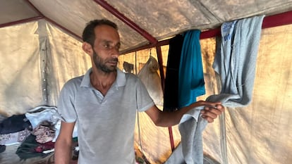 Al Zuhairi, tampoco ha recibido una tienda de campaña, lonas impermeables o cesta de alimentos recientemente, pese a que el invierno está llegando y el estado de una persona asmática empeora con el frío y si no come adecuadamente. “Solo encuentro algo de comida en un comedor social cercano”, afirma. En unos días, su hijo Iyad, de 44 años, va a ser padre. “Esperábamos una mejora en nuestras condiciones de vida, pero nada ha cambiado”, lamenta.