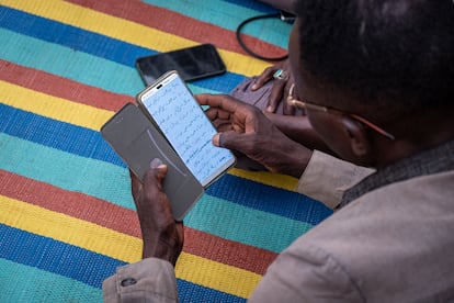 Mohamed Usman Hassan saca su teléfono del traje gris que lleva puesto y que compró hace unos días. “Ahora no nos queda más que observar con consternación lo que está sucediendo en El Fasher”, dice sombríamente. Observa vídeos que le han enviado amigos y familiares de personas siendo asesinadas. “La gente está tirada muerta o muriéndose en el suelo por todas partes”, explica. Señala la zanja que las RSF habían cavado alrededor de la ciudad. “Esos agujeros en la tierra ahora están llenos de cuerpos”, se aflige.