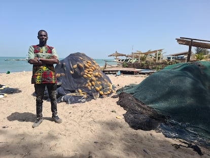 Aboubacar Badji abre los brazos con un gesto de resignación y señala su vieja máquina de coser en un pequeño local que da a una calle de Gunjur. “Este es mi taller. Llevo 15 años aquí metido y no me da para comprar un terreno o construir algo mío. Todo lo que gano es para alimentar a mi mujer y mis cuatro hijos”, explica. En 2014 su joven aprendiz Bintou se fue a España. “Ella manda dinero a su familia, los sostiene desde allá. Los migrantes son triunfadores pero a mí me miran como un fracasado. En esta sociedad si no tienes dinero no vales nada. Eso hace que te vuelvas loco”, añade. En 2024 se fue en cayuco, pero a los ocho días estaba de vuelta tras vivir el horror a bordo. “Los senegaleses que conducían la barca empezaron a matar a los gambianos, nos acusaban de brujería. Cuando ya estábamos en aguas de Marruecos decidieron volver por miedo a que los delatáramos”, concluye, “sé de gente que pide visados pero esa vía es imposible, al final pierden su dinero”.