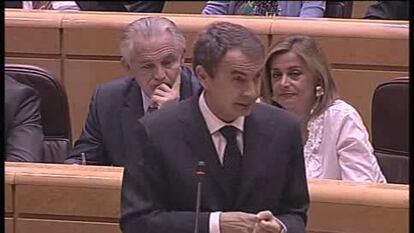 El presidente del Gobierno se ha referido también a los altercados protagonizados la semana pasada frente al Parlamento de Cataluña protagonizados por un grupo de indignados, de cuyos actos se desmarcó en bloque el Movimiento 15-M. "Lo que la democracia no puede permitir es la coacción o la intimidación... y desde luego no lo va a permitir", ha afirmado Zapatero, en respuesta al senador de CiU, Jordi Vilajona, que le ha preguntado, tras recordar los incidentes en Cataluña, cómo hacer frente al paro entre los jóvenes.