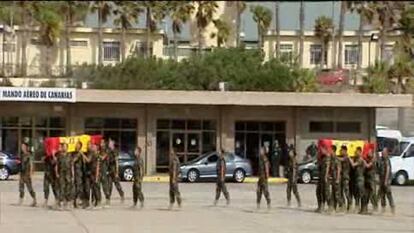 Sobre las ocho de la mañana, los compañeros de los dos militares han celebrado un emotivo acto, tras el cual han introducido los féretros en el Airbus 310 que ha repatriado los cuerpos hasta la base aérea de Gando, en Gran Canaria.