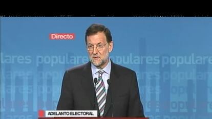 "Voy a hablar de futuro", ha anunciado el jefe de la oposición al principio de su intervención a propósito del anuncio de Zapatero, del que había sido avisado con antelación, según fuentes del partido. "El adelanto electoral es lo que la mayoría de los españoles deseaba desde hace mucho tiempo", ha asegurado. "Ahora los españoles son los protagonistas y las elecciones son el impulso necesario para salir de la situación en la que nos encontramos".