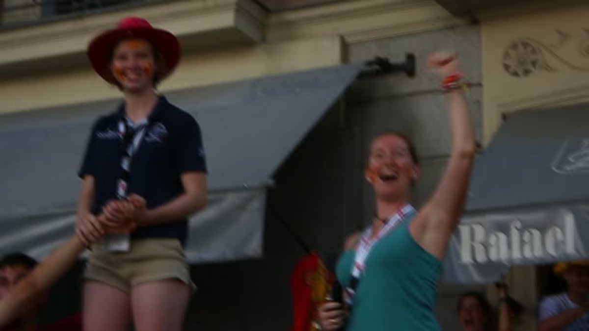 Concluida la recepción oficial, Ratzinger se dirigió, en papamóvil, a la Nunciatura, donde se aloja con parte de su comitiva. Por todo el camino fue vitoreado por peregrinos que le lanzaron serpentinas y globos blancos y amarillos (los colores de la bandera vaticana), le aclamaron y gritaron: “Sí, sí, sí, el Papa ya está aquí”.