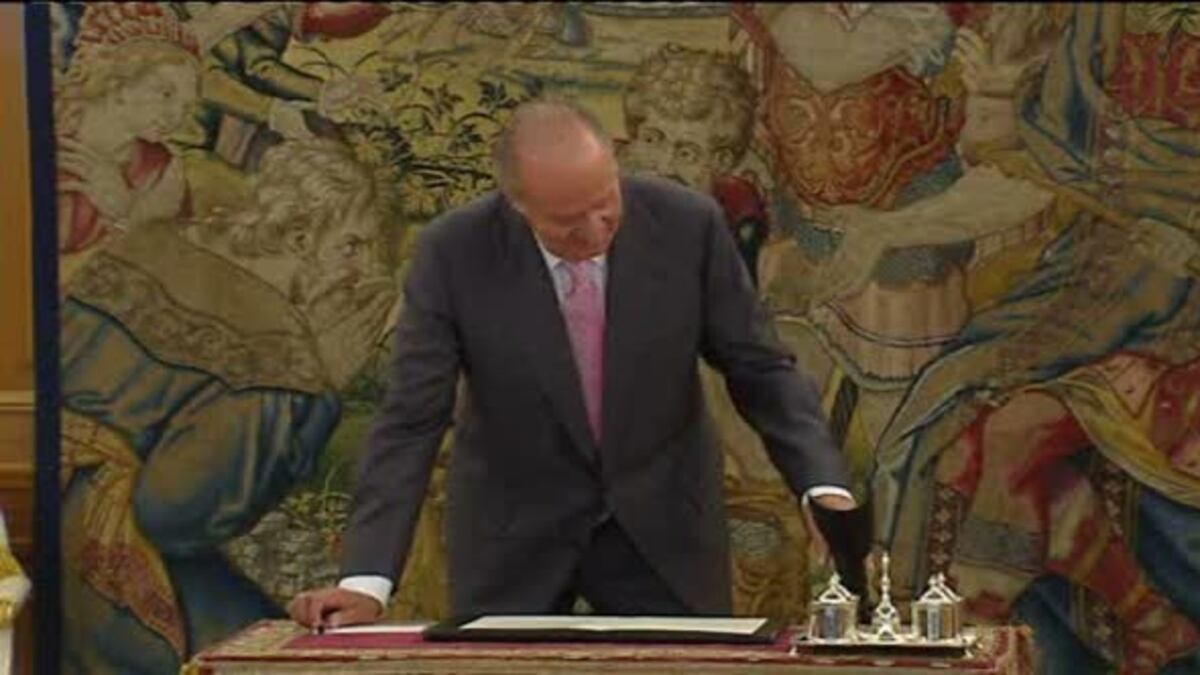 La ceremonia ha arrancado con la lectura por parte del jefe de Protocolo de la Casa del Rey, Alfonso Sanz, del trámite de comunicación de la reforma trasladado al monarca por los presidentes de las Cortes, José Bono y Javier Rojo, respectivamente, presentes en Zarzuela.