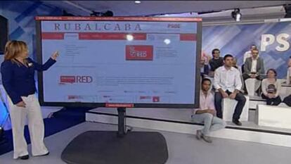 En el primer caso, se ha buscado una página participativa, que permita al internauta conectar directamente con Rubalcaba y con los cabeza de lista del PSOE a través de las redes sociales. Este apartado recopila las iniciativas de participación que usa el Partido Socialista: el portal de propuestas ciudadanas Diálogos en Red, el sitio para simpatizantes Voluntari@s en red y las bitácoras de RedBlog.