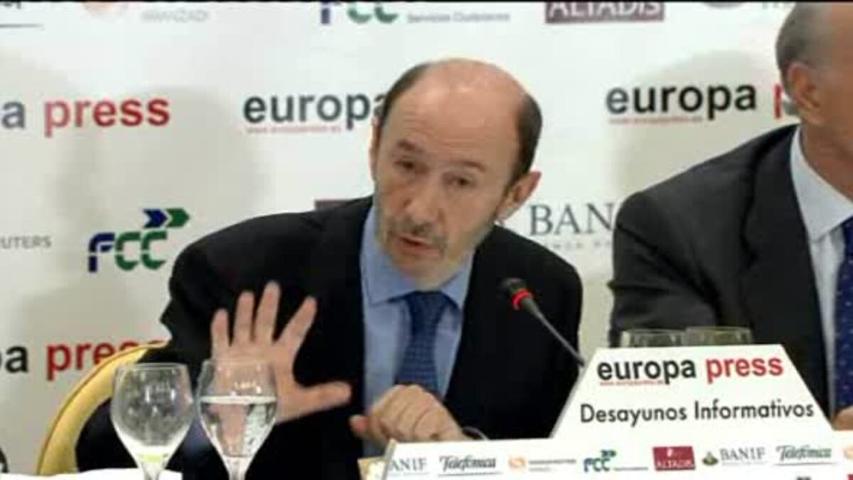 Además, el aspirante socialista se ha referido a la propuesta de Esteban González Pons, vicesecretario de Comunicación del PP, de eliminar 50 de los 350 diputados del Congreso, una propuesta que Rubalcaba considera que puede llevar a un "esquema menos proporcional", aunque ha asegurado que está dispuesto a analizarlo en un debate.