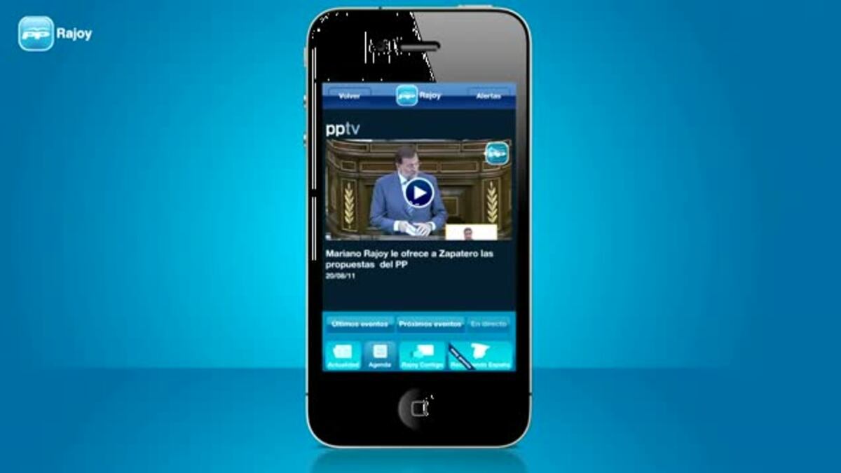 El líder del PP ya está en los teléfonos inteligentes. El Partido Popular ha lanzado hoy una aplicación para el móvil protagonizada por su candidato a la presidencia del Gobierno. La herramienta online es gratuita y funciona en iPhone, iPad y cualquier otro con sistema operativo Android.