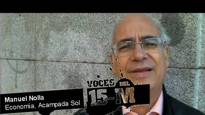 A sus energéticos y peleones 64 años, Manuel Nolla es un hombre que ha participado, como bien dice, “en todas las batallas”: Incluida la lucha por la democracia. No es de los que acudió a la manifestación del 15-M, es de los que sumaron su indignación días más tarde. En concreto, dos días más tarde, poco después de oír que habían sido desalojados los acampados. Decidió a acercarse por Sol a ver qué pasaba ahí. Acudió a las primeras asambleas. “Me encontré con el movimiento más revitalizante que ha vivido esta democracia. Vi una vitalidad, una creatividad y unas ganas de cambiar las cosas que deben ser ejemplo para todos los que se mueven”.