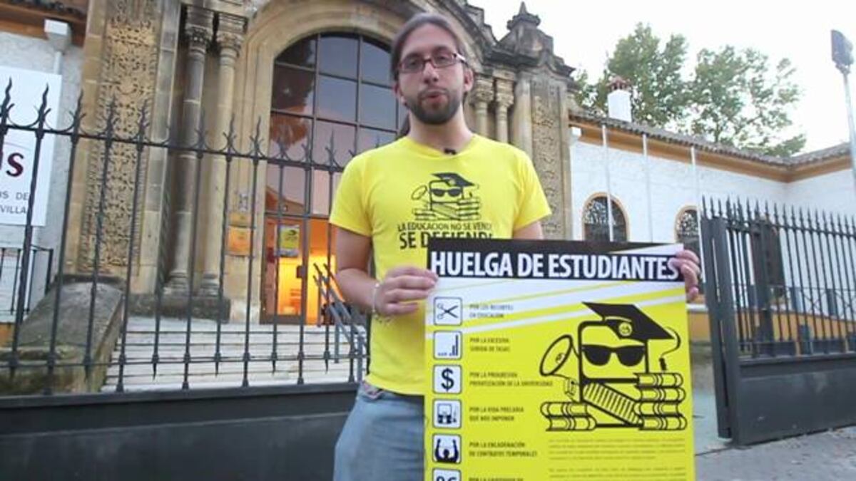 Manuel Gómez, estudiante de Filosofía de último curso, integrante de Movimiento de Acción Estudiantil (MAE), de la red de organizaciones Estudiantes en Movimiento y delegado del Consejo de Alumnos de la Universidad de Sevilla, es uno de los convocantes de la huelga. Cree que el sistema actual es una “fábrica de precarios” y las reformas que se promueven desde la implantación del plan Bolonia llevan la enseñanza hacia un modelo mercantil y empresarial de la educación.
