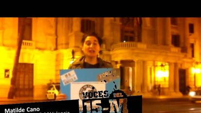 Insultos y algún escupitajo son los gajes de ser coherente con sus ideas y no quedarse en casa viendo pasar la crisis, tanto la económica como la política. Matilde Cano enfermera y estudiante de Derecho, de 37 años y madre de un niño de ocho, se incorporó a las protestas de los indignados tras asistir a la ya histórica manifestación del 15-M. Cuando el 17 de marzo se enteró de que en la plaza del Ayuntamiento de Valencia, allí desde donde ahora lanza su mensaje en vídeo, habían acampado decenas de personas, se unió a la protesta. Y aprovechó sus conocimientos de derecho para colaborar en la redacción de lo que luego se convirtió en el Manifiesto de Acampada Valencia.