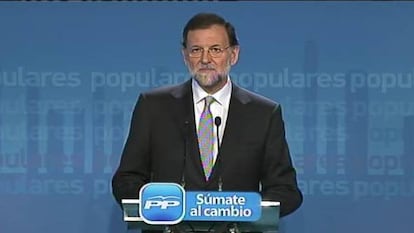 En su primera comparecencia tras conocer la aplastante victoria, Rajoy ha mostrado una euforia contenida ante las miles de personas que se han acercado a la sede del partido en Madrid para celebrar los resultados. "Gobernaré sin sectarismo. Nadie tiene que sentir inquietud", ha advertido. Con la promesa de ponerse a trabajar desde mañana para situar a España "a la cabeza de Europa", Rajoy ha admitido que, ante la delicada situación financiera, no puede prometer "milagros" y ha invitado a todos, sus votantes y no votantes, a participar del cambio.