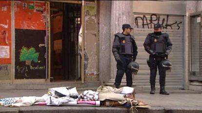 Los okupantes permanecían en el céntrico edificio de la calle Carretas desde el 15 de octubre Detenidas 10 personas por infracción de la ley de extranjería y delito contra la salud pública Los indignados convocan una concentración esta tarde a las 20.00 en la Puerta del Sol
