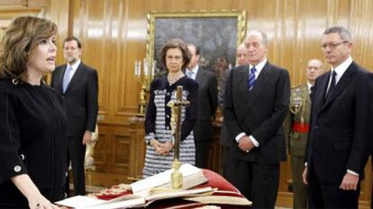 El exalcalde de Madrid Alberto Ruiz-Gallardón -esta mañana ha renunciado a la alcaldía- ha sido el primero. Y tras su jura, convertido ya en ministro de Justicia, ha pasado a ejercer de notario mayor del reino y a tomar juramento a sus compañeros en el Ejecutivo.