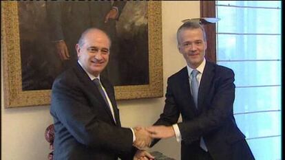 La principal tarea a la que tendrá que enfrentarse el nuevo ministro del Interior, Jorge Fernández Díaz, tiene nombre propio: ETA, y el final de la violencia terrorista. A este asunto dedicó ayer la mayor parte de su comparecencia en el ministerio tras la toma de posesión de su cartera. No hubo un mensaje rupturista con respecto al discurso del Ejecutivo socialista y del ministro saliente, Antonio Camacho, al que Fernández Díaz agradeció el “modélico” traspaso de poderes. Muy al contrario, las líneas básicas son comunes: el anuncio de cese definitivo de la violencia es una buena noticia, de la que el nuevo ministro personalmente se alegra. No es, sin embargo, “suficiente” y, por tanto, los instrumentos de la lucha antiterrorista seguirán activos hasta que ETA deje de existir, que es lo que está esperando la sociedad española. Y las leyes se seguirán aplicando de forma estricta.