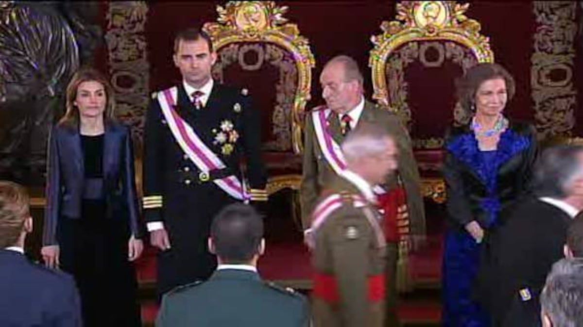 Durante los actos de la primera Pascua Militar desde la llegada de Mariano Rajoy a La Moncloa, don Juan Carlos ha mantenido una breve aparte con el presidente del Gobierno. Al acto han asistido el interventor y el administrador de las cuentas de la Casa del Rey, los encargados de hacer público a finales de 2011 el sueldo del Monarca, informa Mábel Galaz. Las infantas e Urdangarin dejaron de asistir hace unos años.
